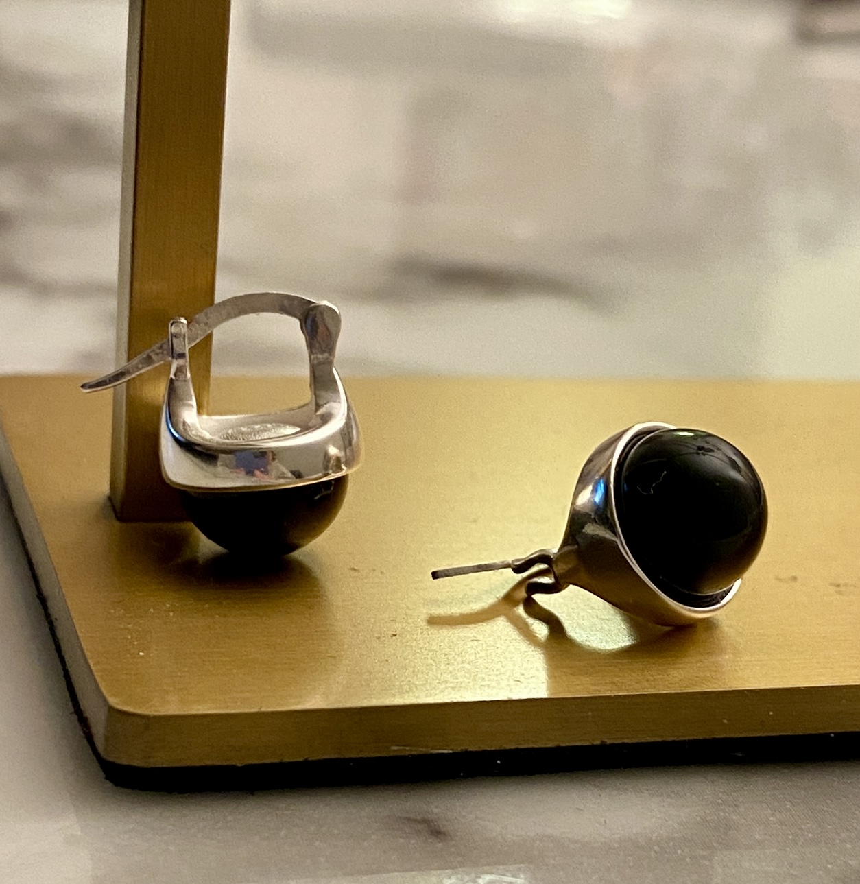 Black + 실버컬러의 구조적조화도 근사한 빈티지 클래식감성의 블랙 원석 오닉스 귀걸이 같이 착용해봐주세요